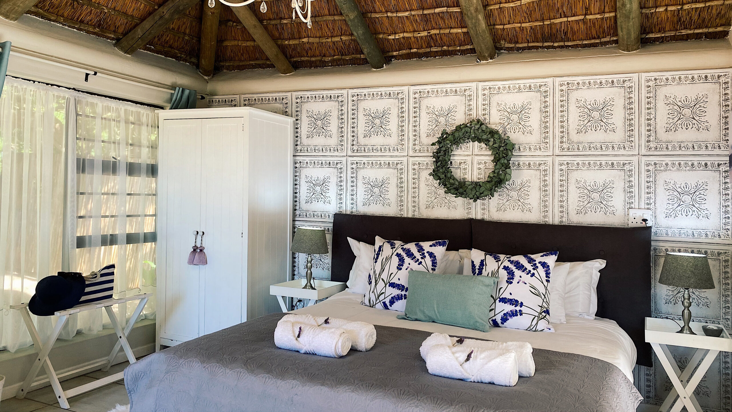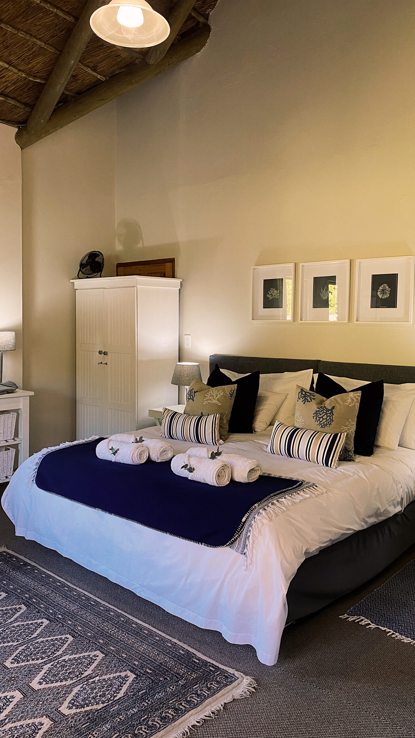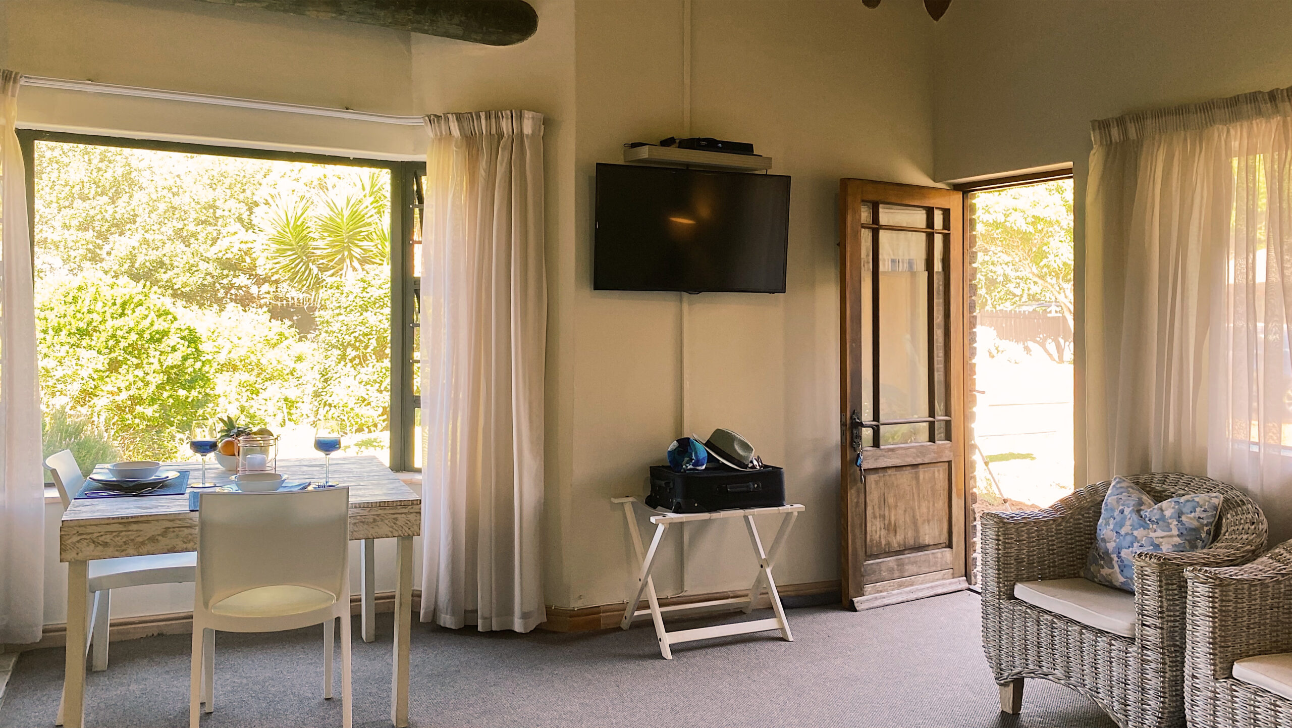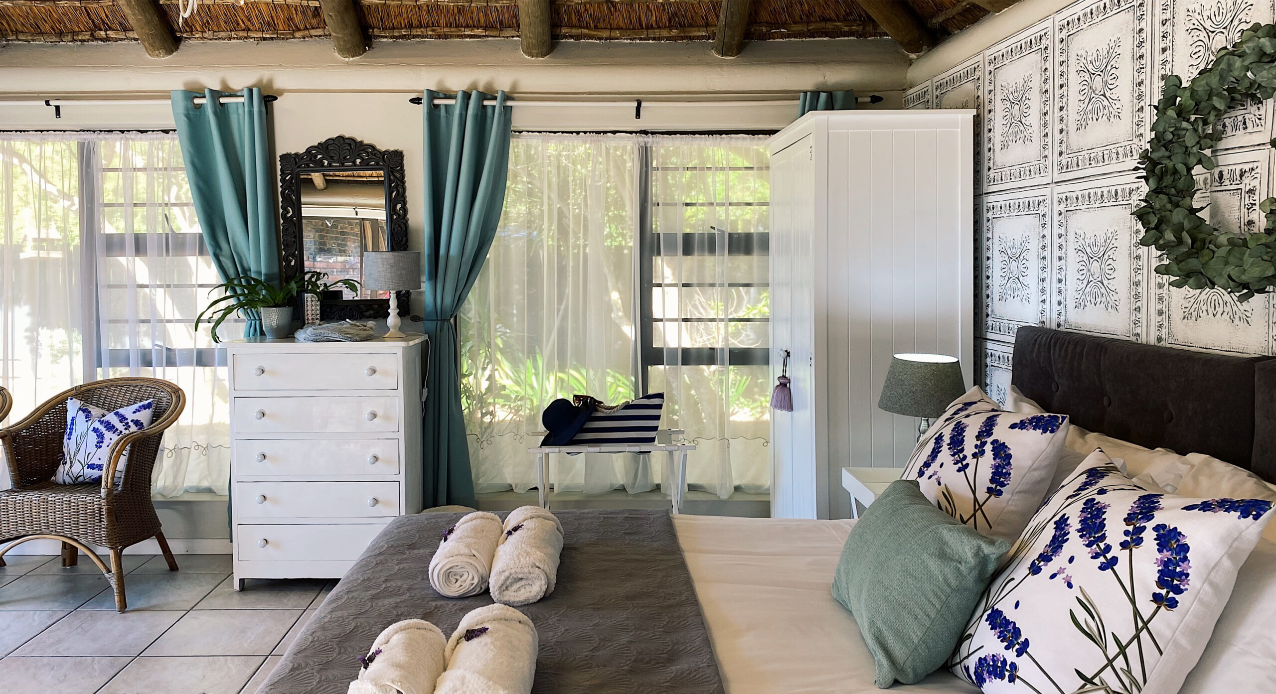Adjacent to the main house, yet private and with its own entrance, this suite has a king-sized bed which can also be made up into singles, upon request. This coastal themed room has an intimate indoor eating area as well as a BBQ area which overlooks the garden and pool.