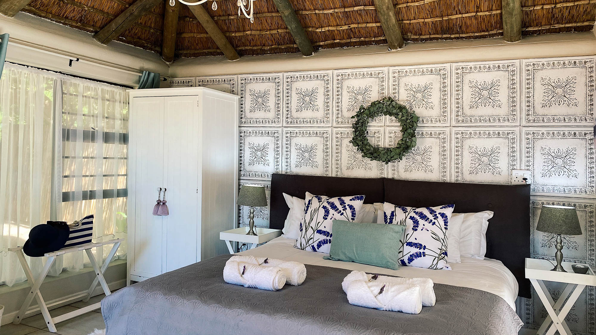 This stand-alone thatched suite, with soothing lavender notes, has a king-sized bed which can also be made up into singles, upon request.