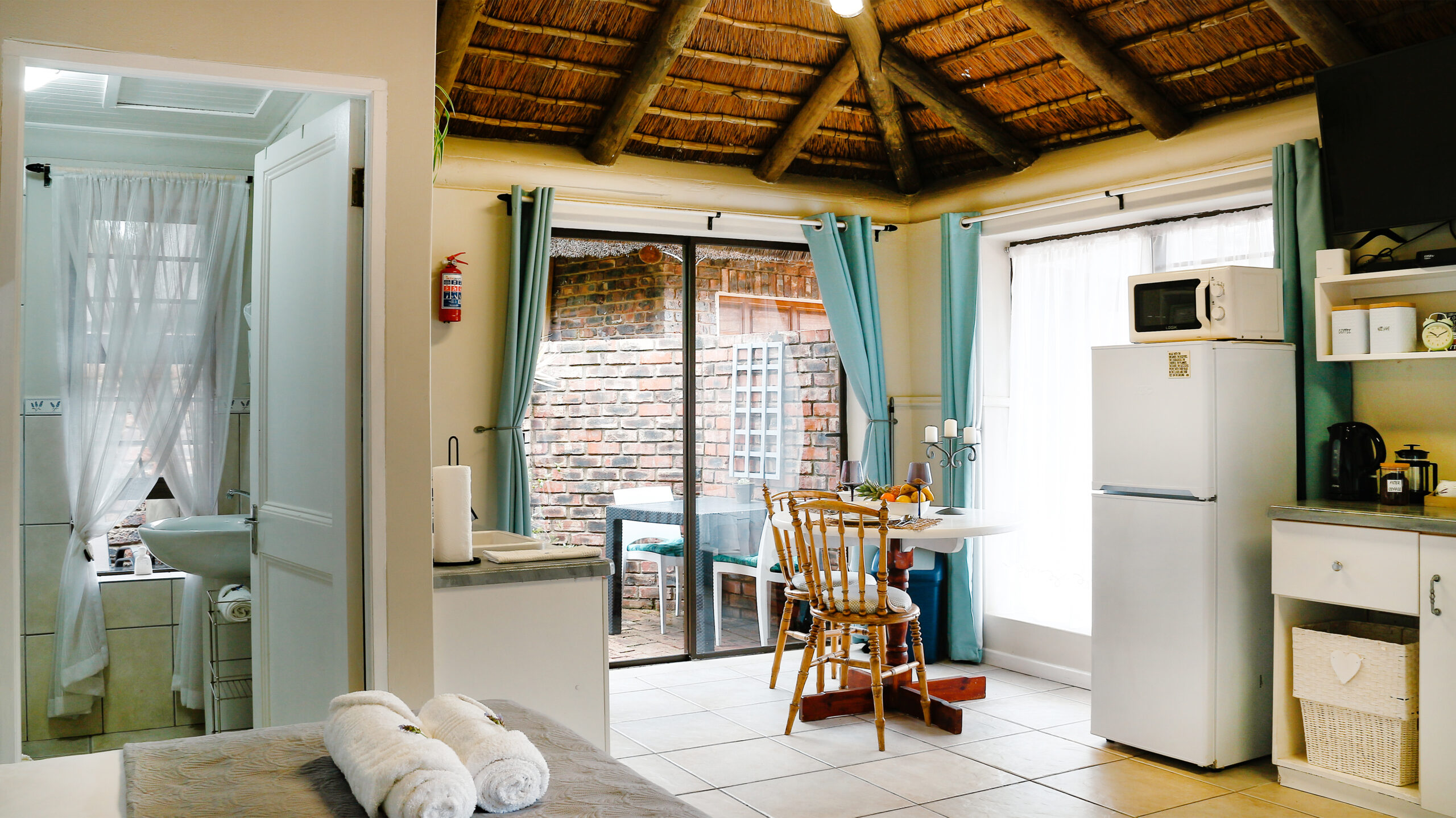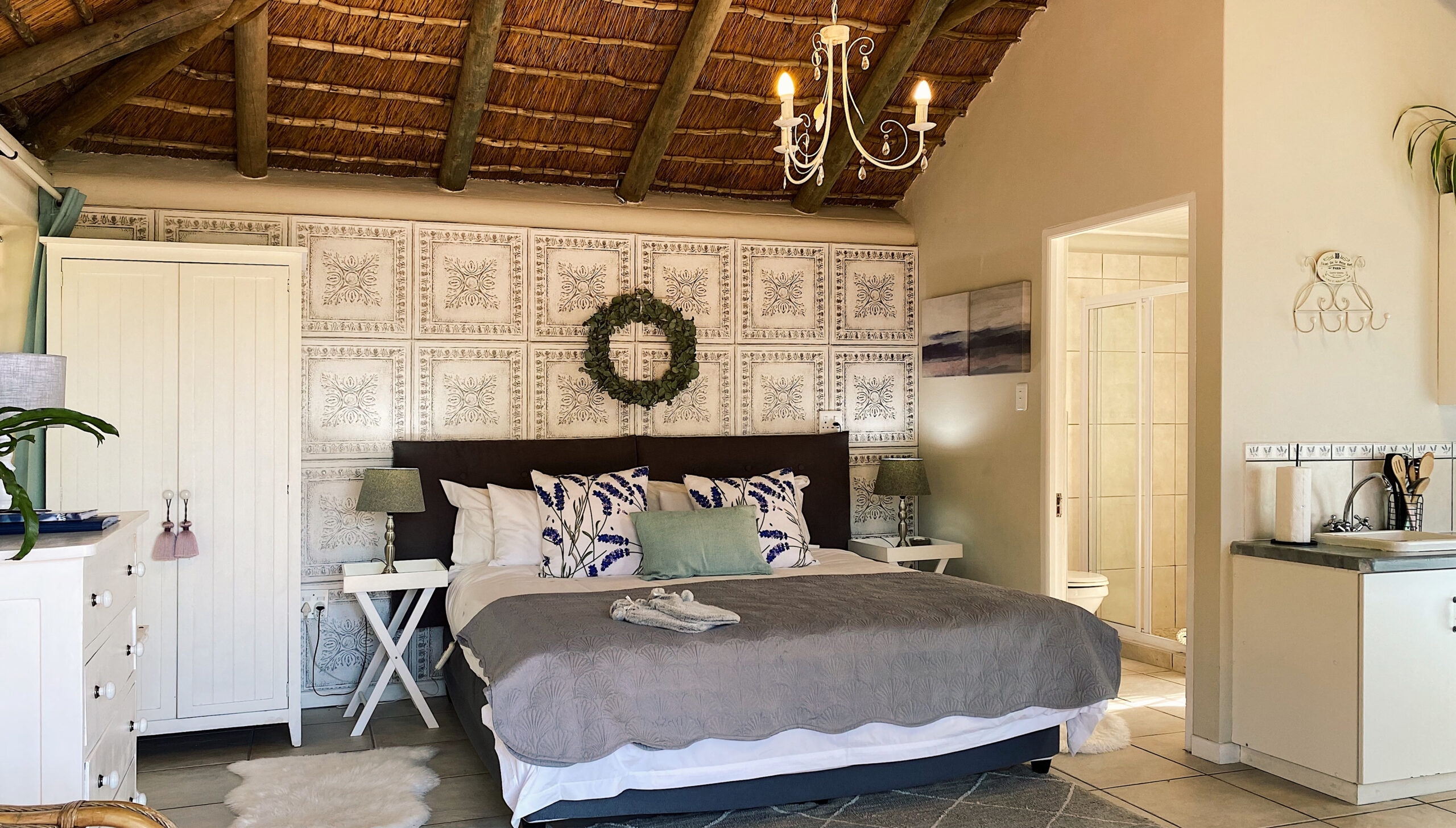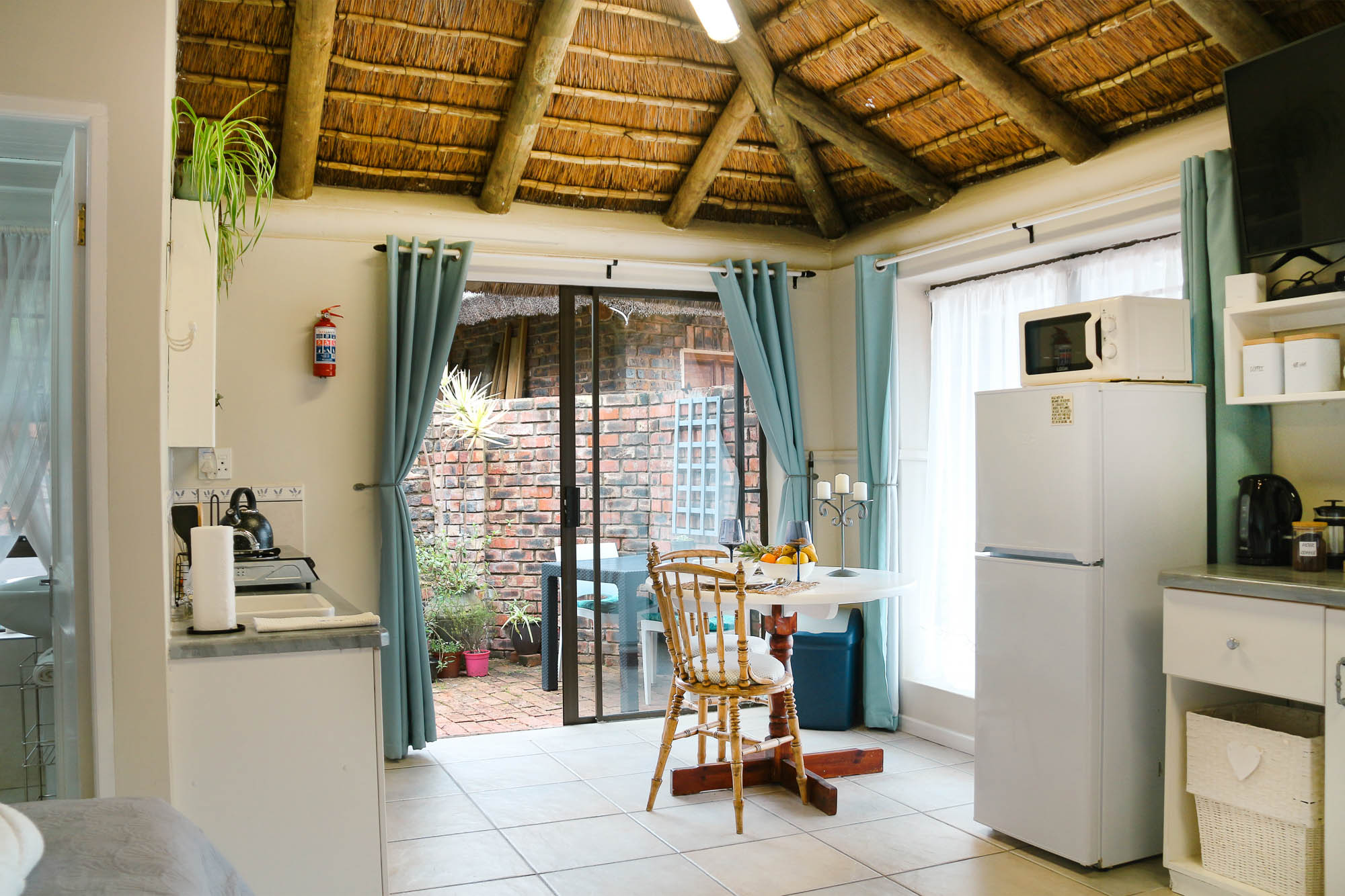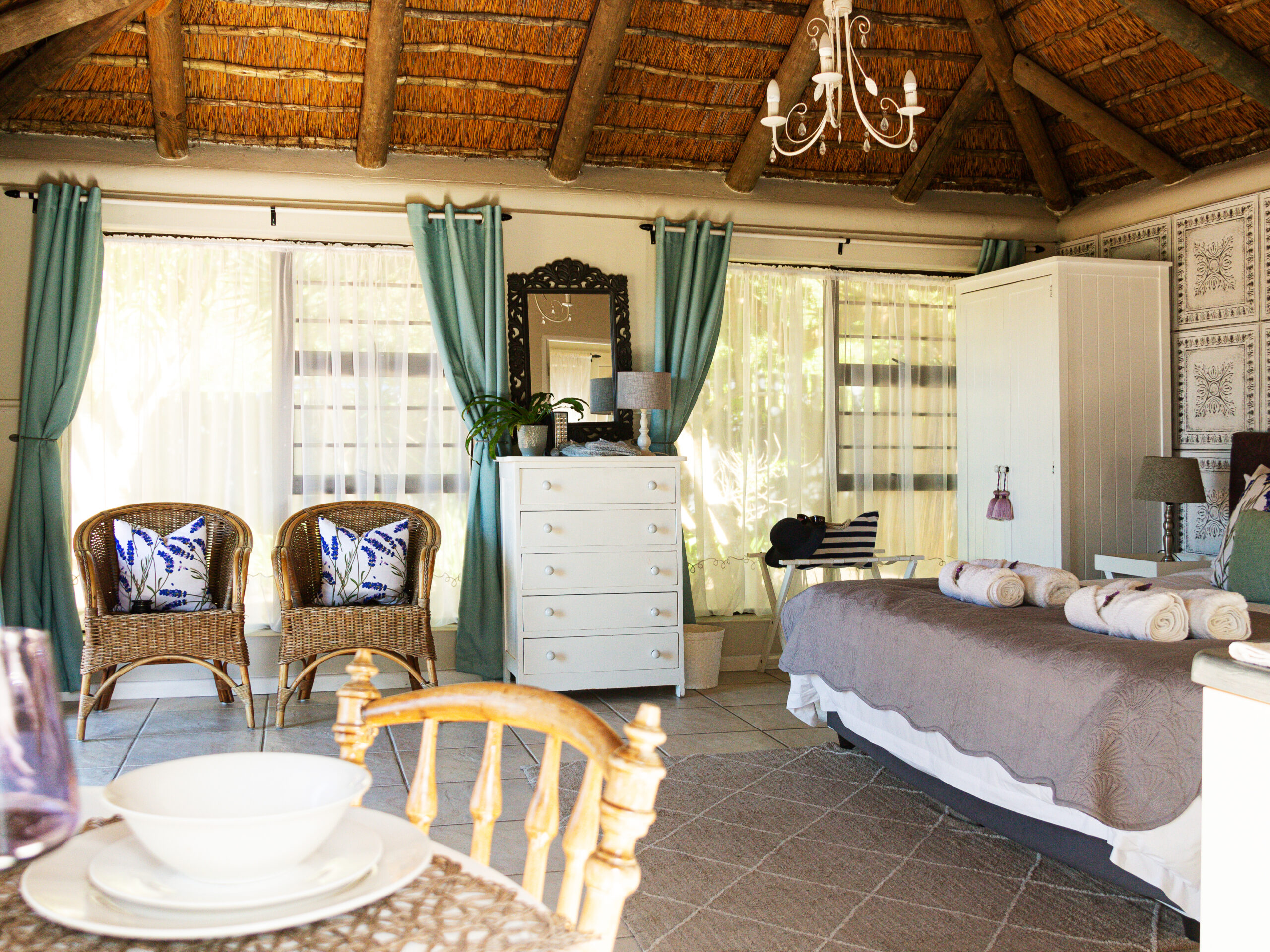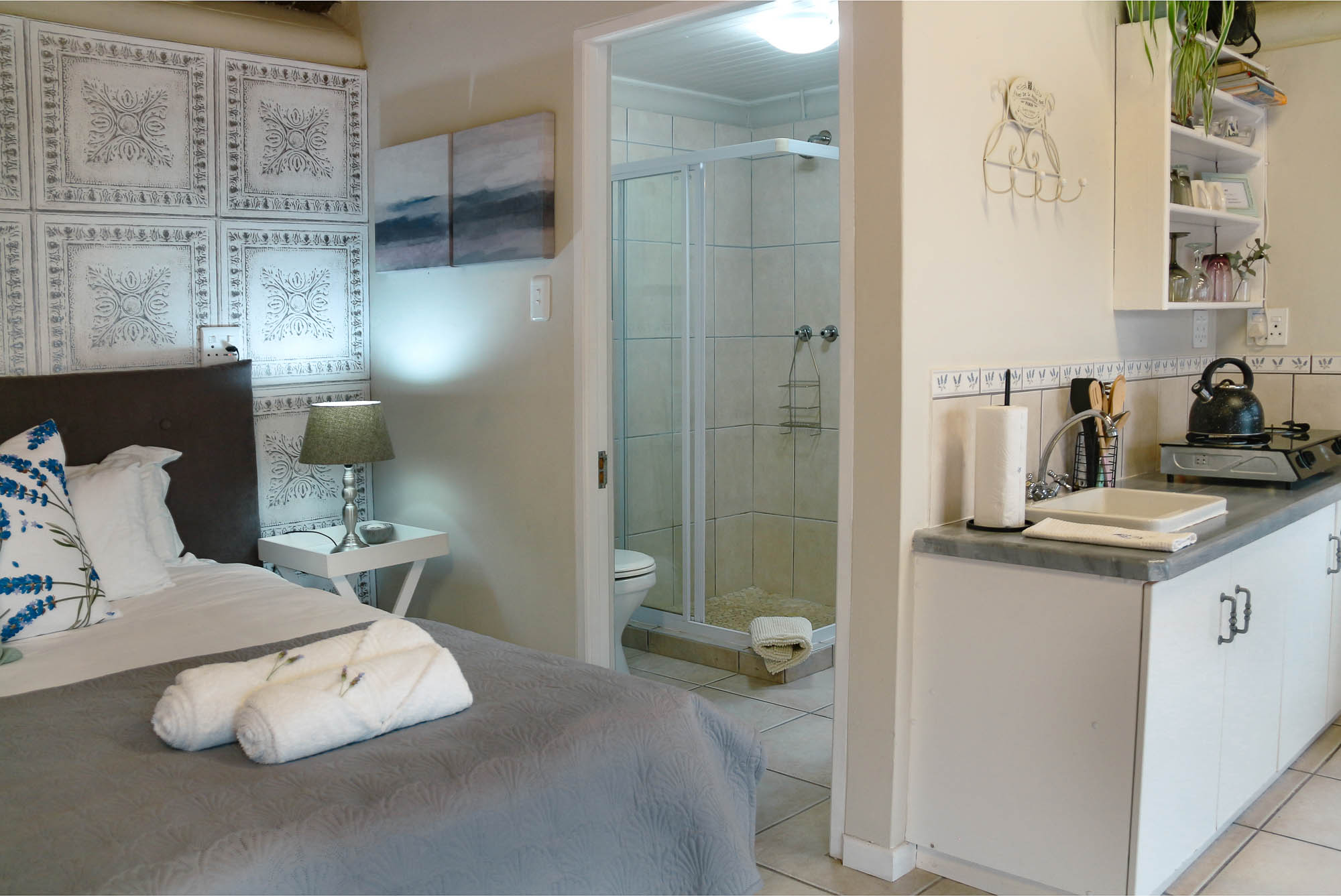 The Lavender Suite is a thatched freestanding cottage decorated with subtle lavender notes, perfect for a relaxed, romantic self- catering getaway. The open-plan room comprises of a comfy, king-sized bed, which can be converted into two singles on request. The kitchenette is equipped with a microwave, a two-plate gas cooker, fridge/freezer, sink, crockery, cutlery and glassware. The en-suite bathroom has a shower, basin and toilet. In-room amenities include a 43 inch smart TV with streaming capabilities, using your own log in details, as well as the full bouquet DSTV satellite service. The free high-speed fibre WiFi is supported by a UPS for continued use during power outages. Additional items are included for use during loadshedding. Enjoy a barbeque in the cosy, private courtyard after cooling off in the sparkling swimming pool. There is safe off-street parking behind a remote-controlled gate and wooden fence, next to the cottage. The Lavender Suite is conveniently situated close beautiful sandy beaches, trendy restaurants and magnificent scenery.