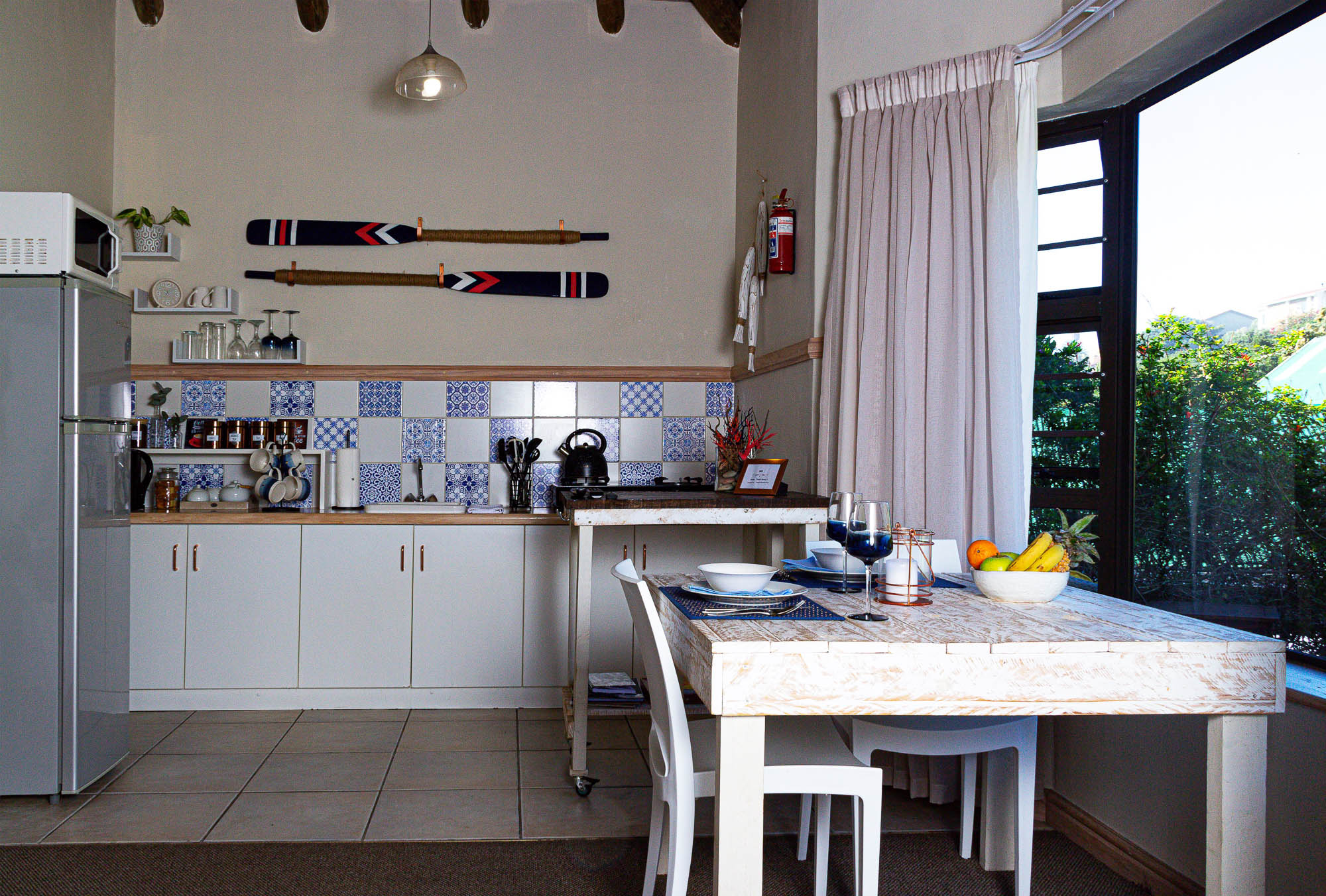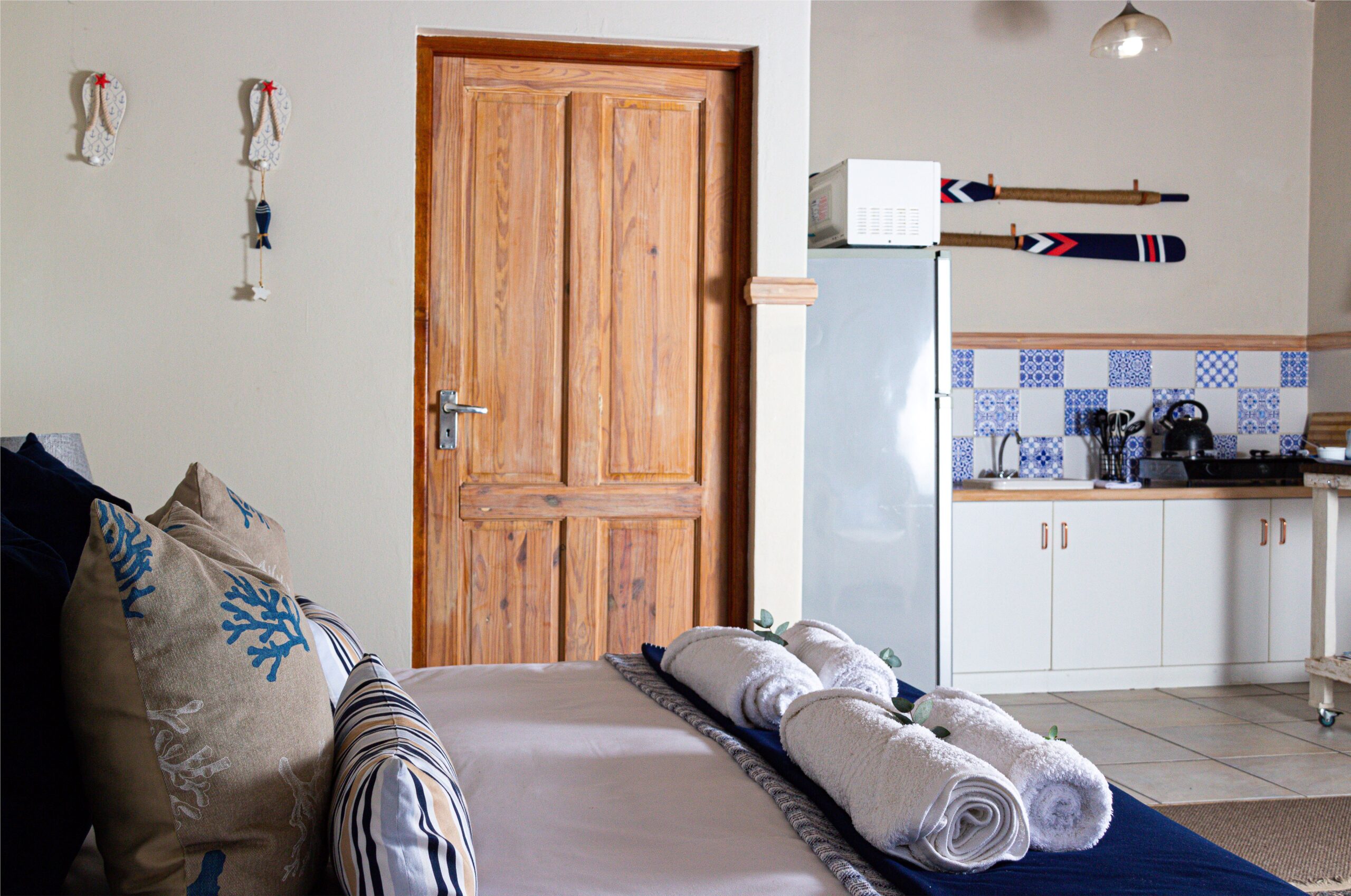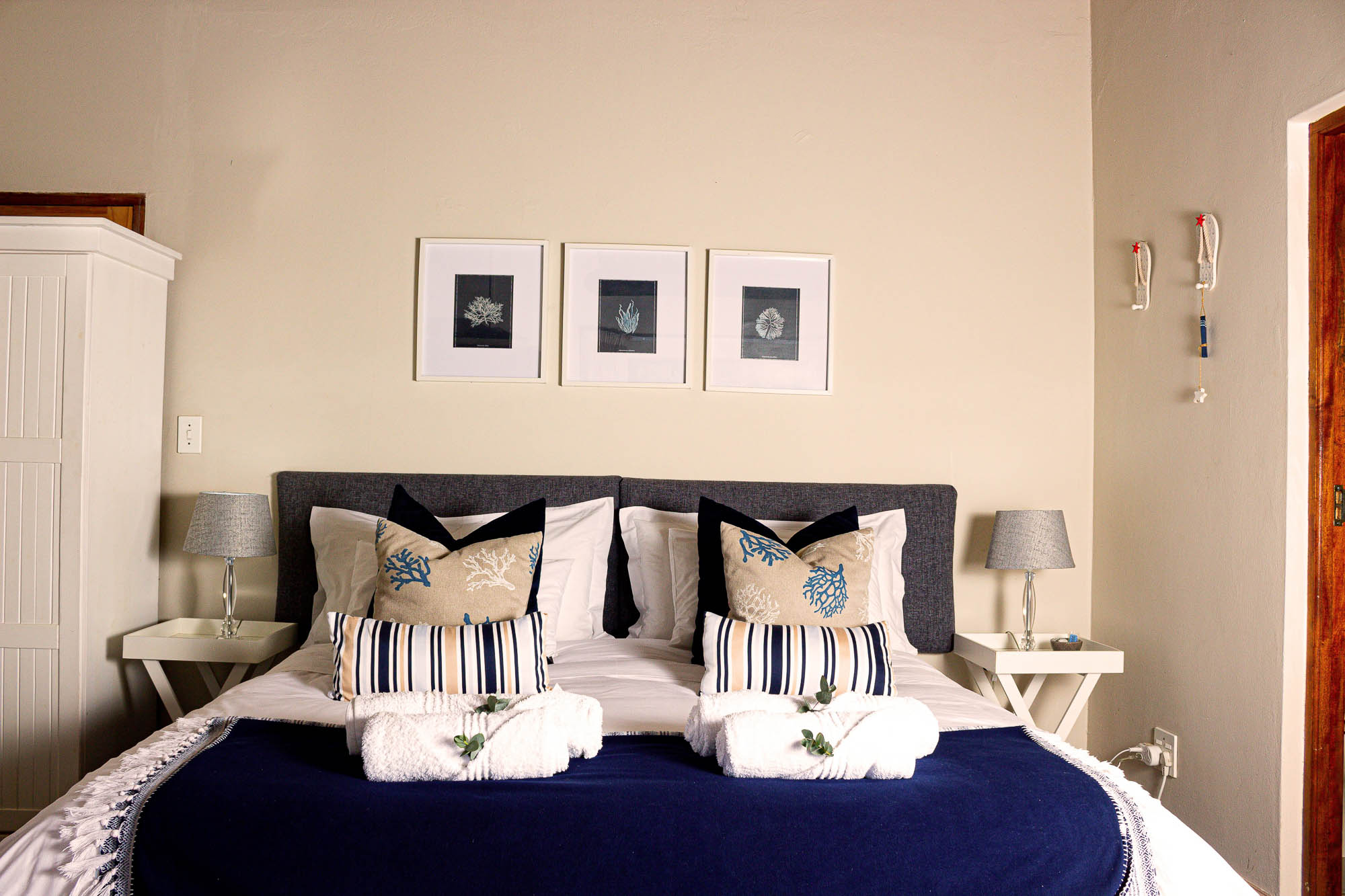 The Blue Coral Suite, with its coastal ambience, offers home away from home comfort in this spacious self-catering unit adjacent to the main house, and its own private entrance. This suite, with its beautiful view of the garden and pool, has a king-sized bed which can be converted into two singles on request. Amenities include a 41 inch smart TV with streaming capabilities, using your own login details, as well as the full DSTV satellite bouquet of programmes. Free high-speed fibre WiFi, which is supported by a UPS to allow for continuous signal during power outages, is also provided. The kitchenette is equipped with a microwave, two plate gas cooker, a fridge/freezer, a stove-top kettle, a sink and all other items needed for relaxed holiday cooking. Additional items are also provided for your comfort during loadshedding and power outages. The en suite bathroom has a shower, basin and toilet. An intimate area outdoors is perfect for sundowners and barbeques after having a splash in the sparkling swimming pool. There is safe off-street parking behind remote controlled gates and a wooden fence. Magnificent long stretches of beach are close by, plenty of outdoor adventures and restaurants with diverse menus are a short drive away.