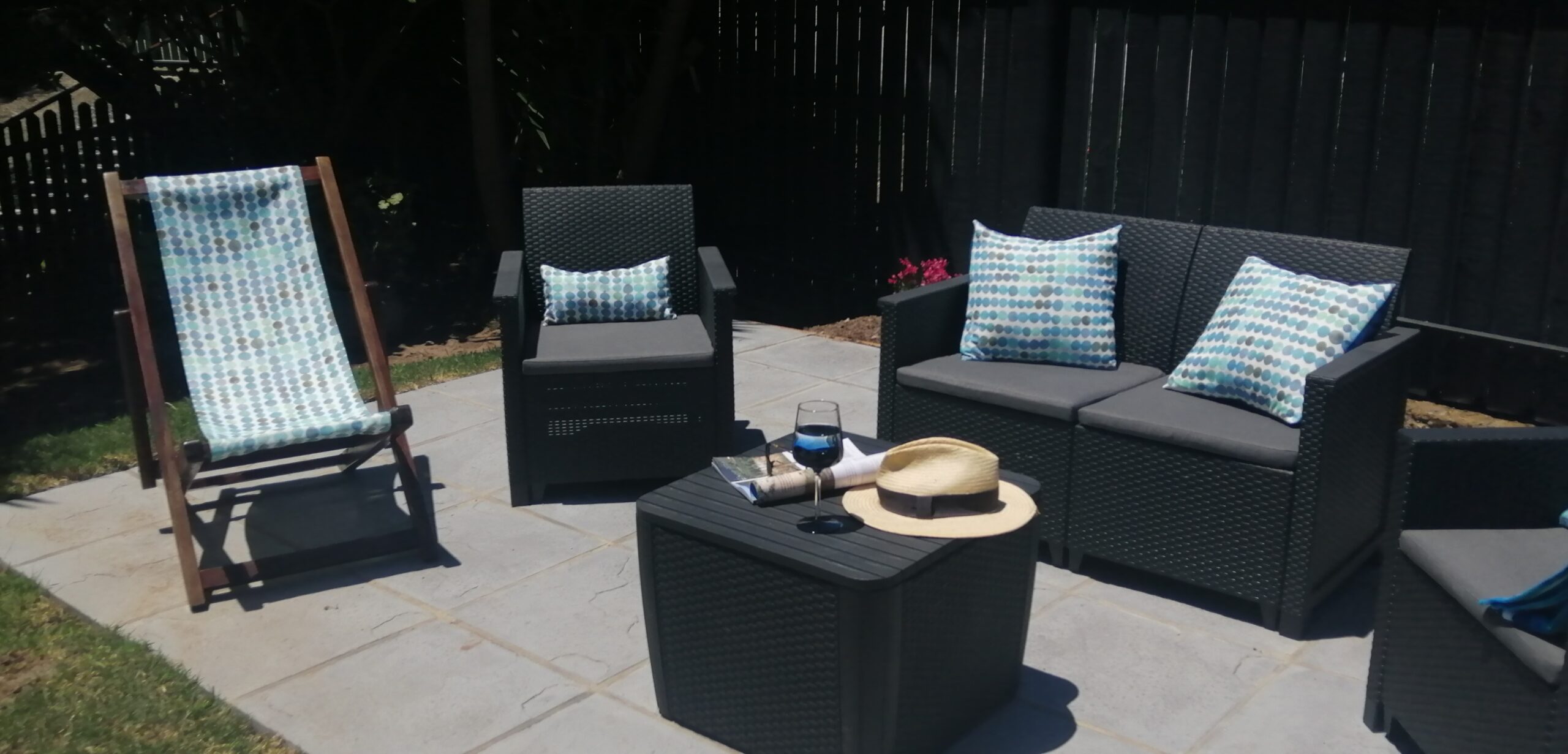 A private, outdoor area with a BBQ for al fresco dining adds to the holiday atmosphere.